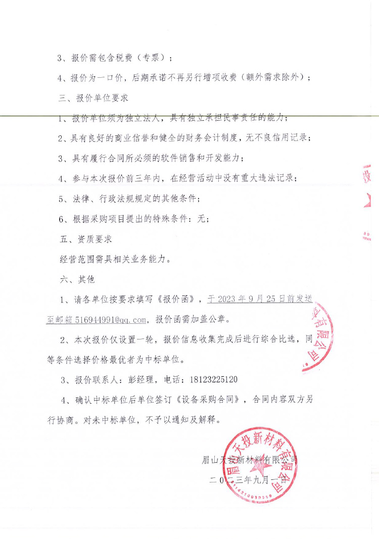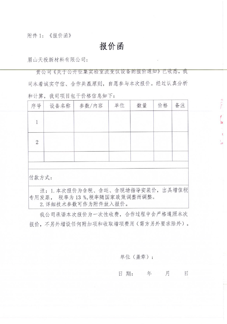 眉山天投新材料有限公司關于公開征集實驗室流變儀設備報價的通知.pdf